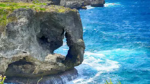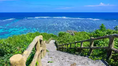Next, we'll visit Kouri Island. Located in the northern part of Okinawa Main Island, it circumnavigates approximately 8 kilometers. As you cross the Kouri Bridge, you'll be captivated by the breathtaking scenery. Sugarcane fields dot the island, along with historical Okinawan architecture, making it a popular location for many famous films and commercials. Other attractions include the Origin Cave and Heart-Shaped Rock. Furthermore, next to the Kouri Island Lighthouse, a 30-meter-high cliff stretches for approximately 2 kilometers, creating a vast and majestic landscape. The beach near the Kouri Bridge attracts many tourists for both swimming and snorkeling.