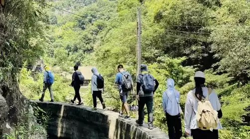 Arriving at the starting point of the hike - Gutian Village, after a short warm-up, we set off, passing through the village and entering the back mountain valley. Along the way, the mechanized farming road, canal, and dirt road alternated, which was very interesting. After passing the pavilion and the bamboo forest, we arrived at the Danfeng Corridor Bridge in Xiaxi Village.
