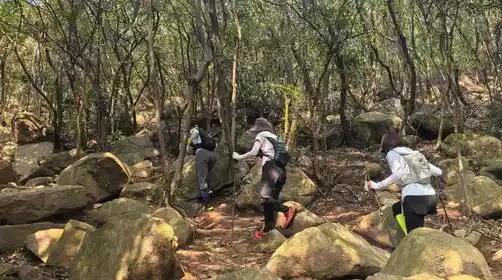 Today's hike, a total of 22 kilometers: [Lingyan Mountain Scenic Area] - [Lingyan Mountain] - [Dajiao Mountain] - [Yawu Ridge] - [Guanyin Mountain] - [Lu Mountain] - [Hejiuling Ridge] - [Lotus Peak] - [Wufeng Mountain] - [Yangchang Ridge] - [Dajiao Mountain] - [Lingyan Mountain Scenic Area]