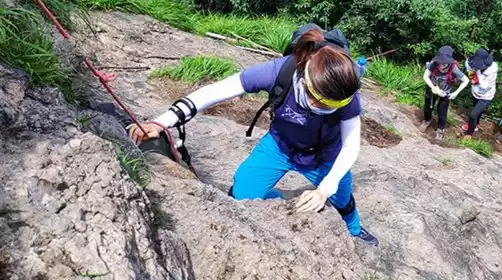 This route offers a refreshing dip in the water, a breathtaking view from a height, and a walk along a primeval forest-like ridgeline. On either side, you'll find fragrant mountains, vibrant bird calls, and cascading waterfalls. Depending on the trail conditions, you'll also have the added bonus of a climb!