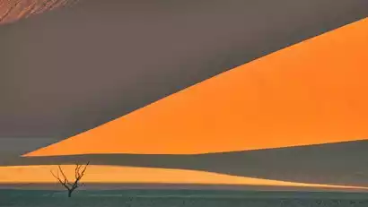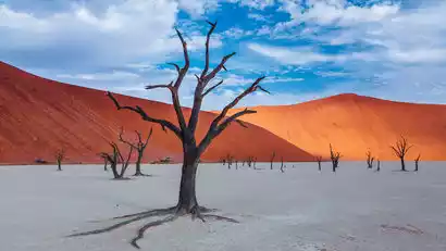 After breakfast, we'll depart for a photoshoot in the Sossusvlei Desert. Within the vast 54,000 square kilometers of the Namib Desert, the Sossusvlei Desert stands out as a striking sight. Its towering crimson dunes contrast beautifully with the blue sky and white clouds, creating a stunning photo opportunity that's sure to draw countless likes, no photo editing software needed.