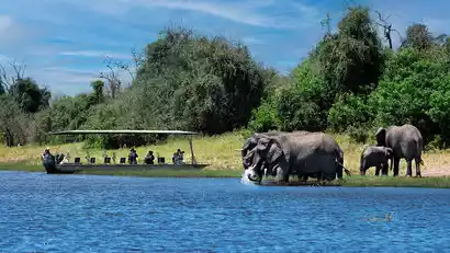 We'll then drive to Botswana, the third country on this itinerary. Botswana is a landlocked nation, bordering South Africa, Namibia, Zambia, and Zimbabwe, all accessible by land. Despite its small size, Botswana offers a wide variety of game viewing opportunities, including hundreds of elephants frolicking along the Chobe River, the Okavango Delta, and its labyrinthine lagoons. We'll check into our hotel in Kasane and prepare for tomorrow's game drive.