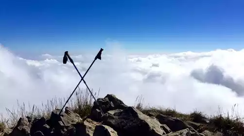 After reaching the summit of Tonggong Peak, descend along the mountain road to the floating bridge;