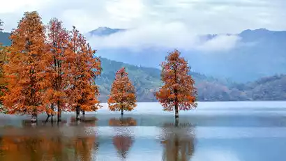 Enjoy a leisurely stroll around Qishu Lake, which boasts breathtaking scenery, especially its Metasequoia trees. The water reaches depths of dozens of meters, and the lake and mountains, with their shimmering emerald waters, are like a virgin, shrouded in mist and rain. In autumn, large patches of pink flowers gradually sprout along the lake's edge, painting the shoreline a striking shade of rosy pink, a visual feast.