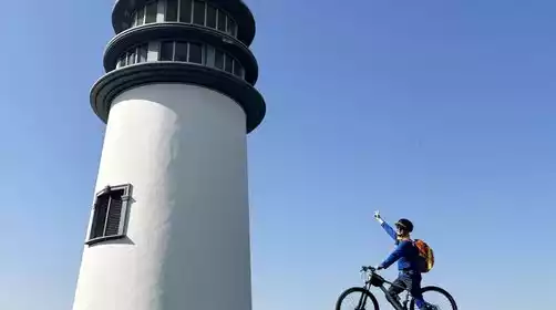 After lunch and a good rest, we continued our journey, riding across the entire "Beauty's Legs" and passing by a "Big Windmill" power station by the lake. After posing and taking beautiful photos here, we arrived at the end of this ride, Lotus Island.