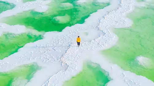 Da Qaidam Emerald Lake, formerly the salt lake mining team of the Da Qaidam Chemical Plant, boasts a vibrant array of colors, shaped by varying mineral concentrations. On clear days, the mirror-like surface reflects the blue sky, white clouds, and snow-capped peaks, creating a fairyland-like experience. After our enjoyable exploration, we'll proceed to Da Qaidam Town for our overnight stay.