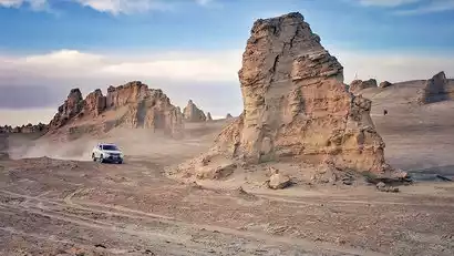 After breakfast, we'll depart for a crucial stop on our itinerary, crossing the Qaidam Gobi Highway. We'll then continue onto National Highway 315, passing through the Red River Valley and experiencing the beauty of the earth's blood vessels. We'll then visit the Water Yadans, where a river diversion unexpectedly created a lake within this unique landscape. Along the way, we'll also see numerous wind-eroded Yadan landforms, including the Devil's City. After the Water Yadans, we'll pass by Xitaijinai'er Lake and experience the thrill of driving an off-road vehicle on a water highway. We'll then continue along National Highway 315 to Mangya, where we'll stay overnight in Huatugou Town.