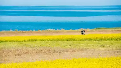 Passing by the Sun and Moon Mountains and Daotang River, our first stop is Qinghai Lake to experience the joy of cycling by the lake. We will then head to the Qinghai Lake Erlangjian Scenic Area, where you can experience the grandeur of Qinghai Lake up close.