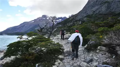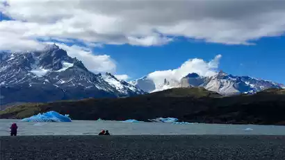 In the morning, we took a boat to Torres del Paine National Park. After arriving at the Glacier Grey area, we took a boat on the lake to admire the magnificent glacier up close. Then we arrived at the other side of Lake Grey and began the famous W-line hike.