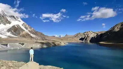 We set off at first light to avoid the strong winds that would otherwise entangle us on the icy lake. After a 3-4 hour hike, we reached Tilicho Lake, the world's highest glacial lake. As the scorching sun gradually stained the icy peaks red, the earth felt the warmth of the sun, marking the beginning of a new day of life, a truly soul-stirring experience. The snow-capped mountains and stunning icy lakes along the way offered a breathtaking experience unlike anything we'd experienced in the previous few days.