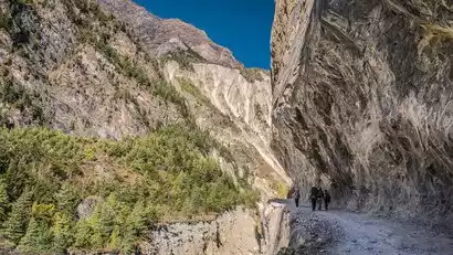 The initial journey begins with a 400-meter ascent, following a steep uphill path through dense forest. At the end of the dense forest, we are surrounded by the majestic Himalayan peaks, stretching from Manaslu to Annapurna. We hike past the local Gurung village and through breathtaking alpine valleys. Upon reaching Bhratang, we'll see Paungda Danda Rock, a renowned, polished rock face rising over 1,000 meters from the flat ground. After an hour's hike, we reach our destination, Upper Pisang, a beautiful Tibetan village. Due to Nepal's climate, the area is in bloom year-round, a truly breathtaking sight. The clean gravel roads and the friendly faces along the way will make you forget the fatigue of the journey, and it also serves as a great viewing platform.