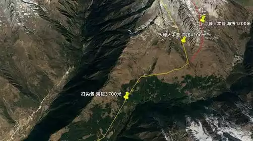 Hiking route: Base Camp (4300m) - Siguniang Mountain Second Peak (5276m) - Base Camp (4300m) - Dajianbao (3750m) - Rilong Town (3200m)