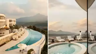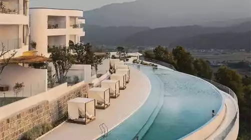 A new member of the SLH (Small Luxury Hotels of the World) alliance, this hotel is located midway up Dongshan Mountain in Tengchong, offering panoramic views of the city and its surroundings. Designed by a team of designers, the hotel blends Mediterranean resort style with wabi-sabi elements. It boasts Tengchong's largest crescent-shaped pool, a vast, blue infinity pool suspended on the cliff, shimmering with shimmering waters.