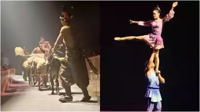 Hui merchants conquer the world: See how the Wang family, a powerful salt merchant, set sail from the Xin'an River. The canal transport fleet transforms into a mobile stage, a giant water curtain descends from the sky, and actors walk on the waves.