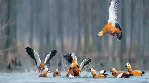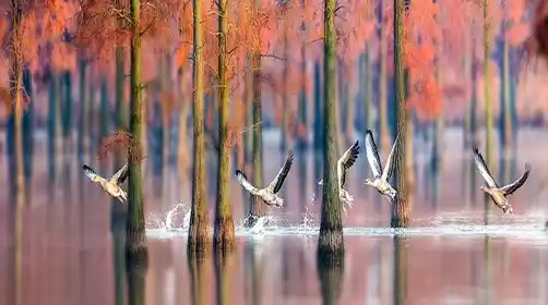 Then we took a boat tour to explore the [Big Pond Cypress Forest]. The pond cypress forest is a rare water forest resource in China. It is currently the largest pond cypress forest in East China and a cormorant paradise in winter.