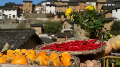 Today, Xin'an Tulou boasts over 300 buildings, each row upon row, each showcasing a diverse range of styles, a rational layout, and a well-organized, staggered layout. These buildings embody the harmonious harmony of man and nature, imbued with the rich architectural characteristics of southern Anhui's mountainous regions, creating a magical, quaint, magnificent, and beautiful landscape. In the golden autumn, drying crops in the sun becomes a vibrant part of the landscape. This practice is a symbol of local custom. Dozens of ancient Hui-style dwellings are scattered across the valleys, where the drop reaches hundreds of meters. Each home features windows for natural light and stands for drying produce. Villagers use their windows as canvases, their stands as brushes, and their drying boards as palettes. In spring, they dry bamboo shoots and ferns; in autumn, they dry red peppers, rice, and soybeans. This creates a series of masterpieces of folk culture, a continuous and orderly procession year-round, brimming with the joy of a bountiful harvest.