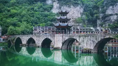 After descending the mountain, we'll head to Zhenyuan Ancient Town, known as the Venice of the East. Zhenyuan, known for its Tai Chi charm, is sure to impress. The Wuyang River, the mother river, flows through the city in an S-shaped pattern, forming a Bagua diagram, earning it the nickname Bagua Ancient Town. Composed of three connected streets, the streets are lined with inns, restaurants, and shops, offering a dazzling array of local delicacies.