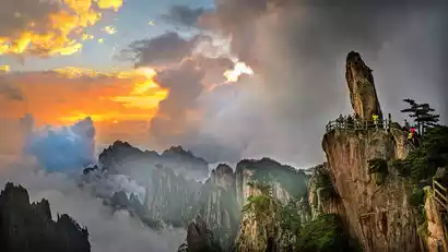 Enter from the ticket gate of Huangshan South Gate Scenic Area, transfer to the scenic shuttle bus to the Yungu Temple Cable Car Box Office, take the Yungu Cableway up the mountain to Beihai Scenic Area, visit the Eighteen Arhats Facing the South Sea, Shixin Peak, and admire the unique pines of Huangshan - Harp Pine, Sea Exploration Pine, Dragon Claw Pine, Twin Pine, Black Tiger Pine, Dream Pen Flowering, Monkeys Watching the Sea from a Distance and other attractions. It is the right time to enjoy the autumn. Under the sunlight, Huangshan is a colorful world, with towering peaks, fiery maple leaves, and red, yellow, orange and green echoing each other. It is an unforgettable autumn scenery.