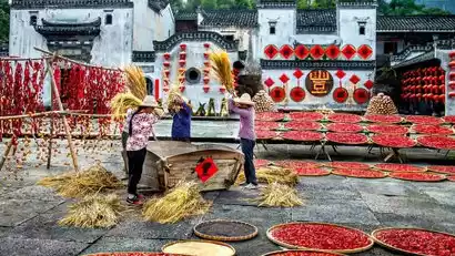 Arrive at the Chengkan Scenic Area, formerly known as Longxi, and first established during the Eastern Han and Three Kingdoms periods. The ancient Huizhou region has a humid climate, and in autumn, villagers would dry their harvest in front of and behind their houses and in open spaces. The vibrant red, yellow, and green colors of corn, peppers, and pumpkins add a touch of playfulness to the village's ink-and-wash aesthetic. After admiring the paintings of people drying their crops in the sun in southern Anhui, follow the guided tour to explore the village's well-preserved Ming and Qing dynasty buildings, including the exquisite painted wood carvings of Baolun Pavilion.