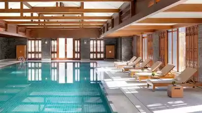 The hotel skillfully blends modern chic with ethnic charm, allowing you to experience the beauty and cultural heritage of Lijiang. Inspired by local residences, all guest rooms feature traditional Chinese wooden furniture, colorful hand-woven tribal rugs, and tactile fabrics and wall hangings. They offer ample space and rain showers. Surrounded by majestic mountains and clear waters, the fitness center features a 25-meter heated indoor swimming pool.