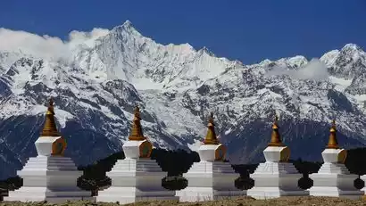We'll continue on to the Wunongding Snow Mountain Observation Deck, nestled against the Baima Snow Mountain. This location offers the most expansive views in Deqin County, offering breathtaking views of the majestic rolling snow-capped mountains, Feilaisi Village at its foot, and the Lancang River valley. Continuing on, we'll reach the Feilaisi Snow Mountain Observation Deck, facing Kawagebo, the main peak of the Meili Snow Mountain, making it a prime photo spot. We'll then check into our hotel, where we'll be provided with a room offering a view of the Meili Snow Mountain.
