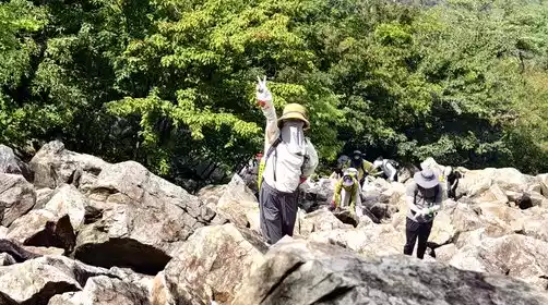 Arriving at the foot of Wushilang Mountain, you will need to climb with both hands and feet. Walk down the mountain and pay attention to your feet.