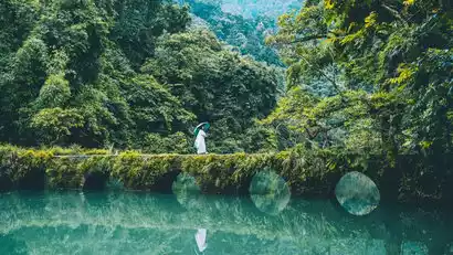 The quaint Seven-Arch Bridge, the tranquil and clear Mandarin Duck Lake, the mysterious and lively Wolong Pond, the karst forest rarely seen at this latitude, and the diverse waterfalls, which look like flowing silk threads and cascading down like the Milky Way, have even impressed National Geographic, calling it "Emerald on Earth" and one of the "Ten Most Beautiful Places in China."