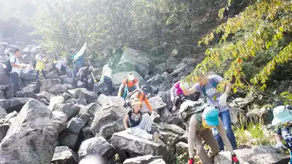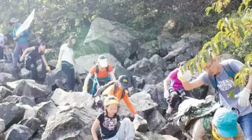 We arrived at the trailhead around 10:45, packed our provisions and plenty of water, and set off along the mountain trail. In due time, we reached Shilang, a rocky outcrop where we needed to climb with both hands and feet, making sure to be careful as we headed down the mountain.