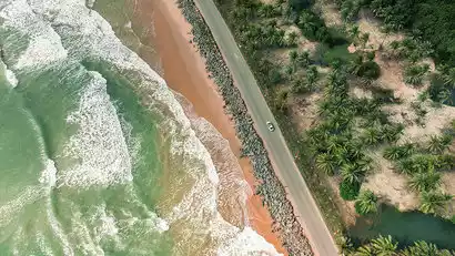 Nestled between mountains and water, Sun Moon Bay is a crescent-shaped bay, surrounded by mountains to the north and bordering the South China Sea to the south. Its sandy beaches are white, soft, and the waters are crystal clear, with boulders and waves crashing through the sea. It's a renowned surfing destination both domestically and internationally. Feel free to capture the surfing action at Sun Moon Bay and its popular aerial photography spot, the iconic highway.