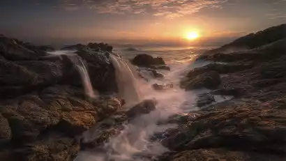 Photographing the sunrise at the coast of Shanqin Bay in the morning