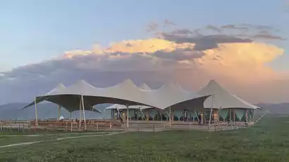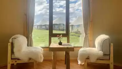 Today is the day to unwind. Sleep in naturally, enjoying a slow-paced vacation. Make a pilgrimage to the foot of the sacred mountain, listen to the morning birdsong, and the Zen-inspired smoky air of mulberry trees—these are the rewards of nature's peace of mind. Inside, enjoy the tent's oversized floor-to-ceiling windows, embracing the vast grassland.