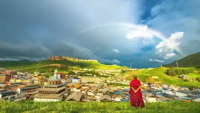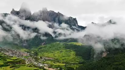 Entering Zhagana, the bustle fades away. Within the area, you'll find vast forests and grasslands, intertwined mountain valleys, and flowing streams and springs. Tibetan villages coexist with temples, and ancient glacial ruins are uniquely beautiful. Trickling streams and herds of cattle and sheep create a natural landscape painting—a true paradise. Today, you can explore Zhagana, circumambulate the Lhasang Monastery, admire the sacred White Pagoda, or visit the observation deck in Dari Village for panoramic views of Zhagana.
