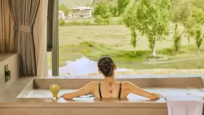 The hotel is located in the picturesque Gulugou-Miyalo Scenic Belt, surrounded by sacred peaks and canyons, offering picturesque scenery with breathtaking mountains and clear waters. Rooted in the renowned Tibetan and Qiang cultural corridor of Aba Prefecture, the hotel boasts a rich tapestry of folk customs and cultural heritage, offering every visitor a unique cultural experience. With hot springs as its focal point and wellness as its core, the hotel offers guests a glimpse into the modern and the ancient, a serene blend of snow-capped mountains and hot springs, a true paradise.