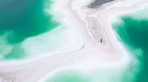 Xitaijinaier Lake is a salt lake. However, what is special is that a magical road divides the salt lake into two halves. The road passes through the two halves, and the lake is half blue and half green, so it is also called the Two-Color Lake.