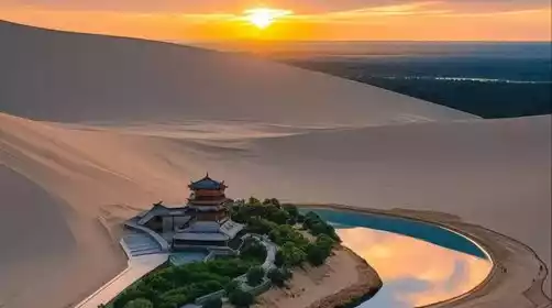 For thousands of years, "mountain and spring coexist, sand and water coexist" in Mingsha Mountain and Crescent Lake. Crescent Lake is never buried by sand and is known as the "Eye of the Desert".