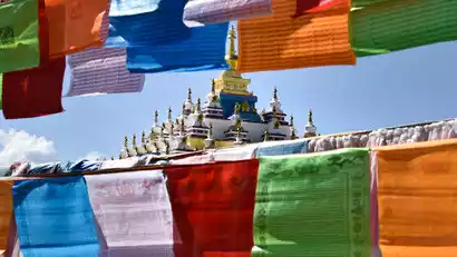Starting from Hongyuan County or Tangke Town, you can admire the vast Hongyuan grassland and arrive at Wache Township. You can visit the Wache Pagoda Forest with fluttering prayer flags and a forest of white pagodas. This is the place where the 10th Panchen Lama chanted sutras and prayed for blessings.