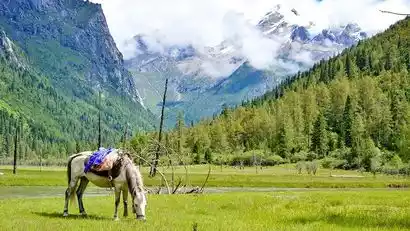 Depart in the morning and head to Bipenggou, which is the back garden of Siguniang Mountain. Once inside the scenic area, you can take a sightseeing bus through the primeval forest to reach Bailong Waterfall, Zhuoma Lake, Three Trees, Moon Bay, etc., and take in the primeval forest, sacred snow-capped mountains, towering peaks, and cascading waterfalls in the valley, creating a beautiful paradise.