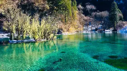 Shuzheng Valley: Shuzheng Waterfall is the first waterfall complex in Jiuzhaigou. Dozens of lakes stretch for 7 kilometers, with multiple steps leading up to the waterfall. The mysterious Sparkling Lake, where wind-driven waves create a dazzling display of golden "sparks," is also a popular attraction. Other scenic spots include Rhinoceros Lake and Wolong Lake.