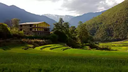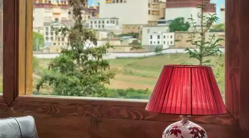 Songtsam Pagoda is built on a rice paddy, where waves of rice ripple in June and the fragrance of rice fills the air in September. Each window is cloaked in the scenery, while each scene emerges from the frame. Songtsam Pagoda has evoked a poetic and pastoral sentiment in countless people. Amidst what you might have thought was a bleak plateau landscape, you unexpectedly encounter the "Jiangnan" region. Rice paddies, forests, irises by the stream, and the golden glow of ginkgo trees, millennia of time are reflected in the beauty of the landscape.