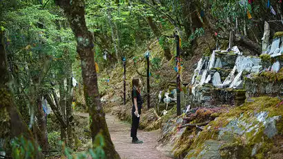 In the afternoon, we'll visit Bodhidharma Cave, the site of Bodhidharma's enlightenment. After Tibetan Buddhism was introduced to Diqing, folklore circumambulates the cave, where Bodhidharma attained enlightenment after spending ten years facing the wall. This cave, nicknamed Bodhidharma Cave, is said to be the abode of noble spirits. We'll invite local scholars to join us in circumambulating the mountain, hanging prayer flags and burning pine branches, while we listen to fascinating historical events and experience a spiritual and physical awakening.