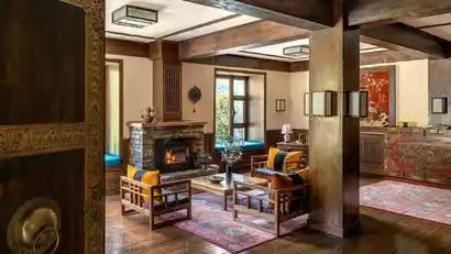 Built along the mountainside, the Linka features Tibetan watchtowers with distinct Kham style, scattered throughout the complex, shaded by flowers and trees. The pine forest paths surrounding the Linka are often visited by lamas, herders, and horses, creating a harmonious and Zen-like atmosphere. Each building in the hotel is named after a village deep within Shangri-La. The lobby is decorated with solid wood furniture, Tibetan carpets, bronze Buddha statues, and Tibetan Eight Treasures ornaments, along with other handmade and antique artworks, offering a glimpse into the essence of Tibetan culture.