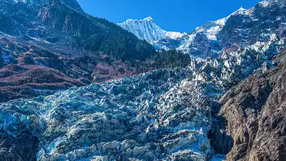 After lunch, we'll reach the Mingyong Glacier, nestled beneath Mount Kawagebo. Stretching for thousands of meters, this 10,000-year-old glacier resembles a silver-scaled, jade-armored dragon, arcing downward from the 6,740-meter Meili Snow Mountain to the primeval forest at 2,600 meters, cascading down to the Lancang River. However, due to global warming, the glacier is melting at an accelerated rate, retreating approximately 500 to 600 meters annually. Mingyong Glacier is also part of the local Tibetan circumambulation route for prayers. Joining a local guide, we'll embark on a pilgrimage to this vanishing glacier.