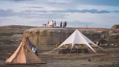 We'll travel to the Urho Ghost City, passing through Burqin. Named one of the most beautiful yardangs in the world by National Geographic China, the Ghost City boasts a unique landform shaped by millions of years of wind erosion. Take a train into the Ghost City and admire the magnificent clusters of giant stone pillars in various shapes scattered across the Gobi Desert. Millions of years of wind and rain have shaped the hollows between the mounds, resembling the ruins of an ancient castle, towering above the Gobi Desert, or like eight rivers winding through the desert.