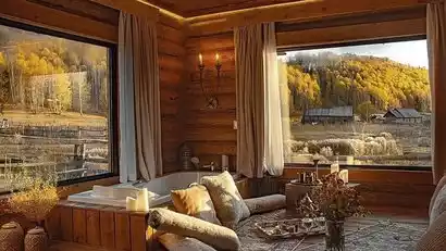 This select Kanas New Village B&B is nestled at the foot of Mount Karaket, nestled against the backdrop of the Fish-Watching Terrace. Utilizing traditional wooden houses, inhabited by the Tuvan people for generations, and incorporating modern architectural techniques, this newly renovated B&B embodies local Tuvan customs. The distinctive wooden houses blend seamlessly with the natural beauty, creating an ideal place to connect with nature and experience local customs.
