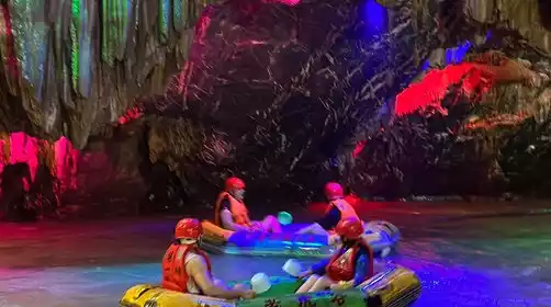 Tiger Valley Rafting, a subterranean river rafting through caves, is renowned both domestically and internationally for its rapids, grotesque rocks, unique forests, picturesque mountain scenery, deep caves, pristine natural beauty, and fresh air. It offers a fantastic underground river rafting experience unlike any other water rafting experience. The rafting route is 5.5 kilometers long, winding, and features 68 drop-offs, with the highest drop reaching 38 meters.