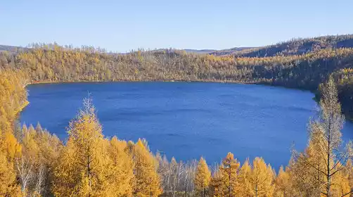 After breakfast, we'll depart for the heart of the Greater Khingan Range, heading to Arxan National Forest Park. Our first stop will be Tuofengling Tianchi. Arxan is a remnant of the Greater Khingan Range. Tens of thousands of years ago, volcanic eruptions formed hundreds of large and small Tianchi (lakes of heaven), of which Tuofengling Tianchi is the largest. In late autumn, the clear waters of Tianchi shimmer with the golden reflections of birch trees, creating a vibrant scene. We'll ascend along the wooden plank path for aerial views of the entire Tuofengling Tianchi.