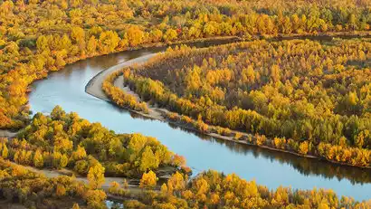 In the afternoon, we will go to Ergun National Wetland Park. Climbing to the top of the mountain, we can overlook the wetland landscape of the mountain waterfall. The winding Qu River echoes the grassland and woodland on the opposite bank, like a scroll of nature, just like an impressionist oil painting.