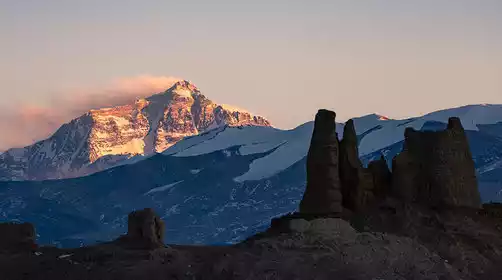 We then entered Everest National Park and transferred to a scenic bus at Zhaxi Zong Township for Everest Base Camp. This location is also a prime spot for photographing the sunset over Mount Everest, perfect for capturing snowy mountain scenery. Facing the biting cold wind and the lonely Mani piles, we bundled up in warm clothing and waited patiently for the moment when the sun would shine upon Mount Everest.