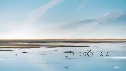 Departing at the right time, we passed by the Dingjie Wetland's water pools, where reflections were stunning and wildlife like black-necked cranes occasionally played. Continuing west, we entered the core area of the Mount Everest Conservation Area. Not far away, we reached the Lhotse Viewing Platform, where we could photograph the distant Lhotse, the world's fourth highest peak at 8,516 meters, and Mount Everest, the world's highest peak at 8,844.48 meters.