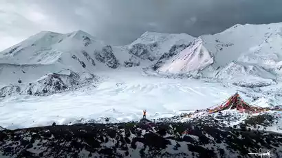 The off-road vehicle goes deep into the sacred mountain area, admiring the rolling Animachen Snow Mountain Group along the way, and arrives at the prayer flag worship platform, where you can appreciate the stunning Zagda Glacier and the emerald-like small lake at the foot of the glacier up close.